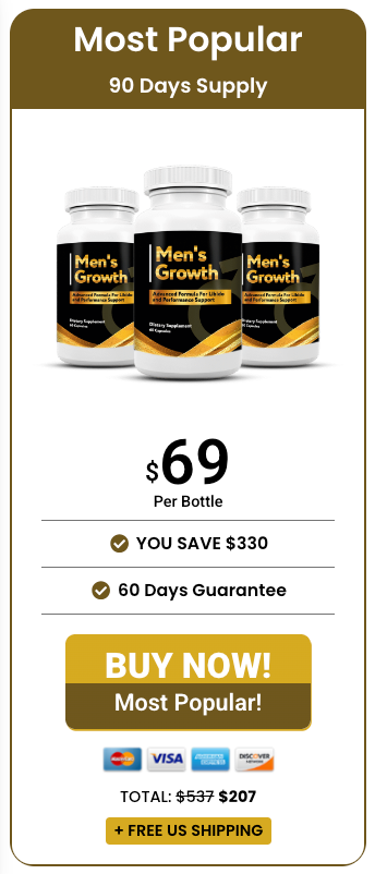 Men’s Growth offers a comprehensive solution for men who want to reclaim their confidence, energy, and bedroom performance without turning to risky pharmaceuticals. Its carefully selected ingredients work together to restore balance in male hormones and boost overall vitality.